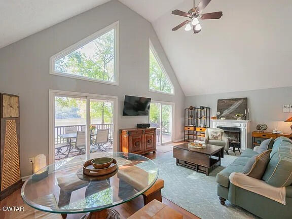 Soaring vaulted ceilings, warm natural light, and river views define this inviting great room. Perfect for quiet mornings or gatherings with family, it seamlessly connects indoor comfort with the beauty of the outdoors.